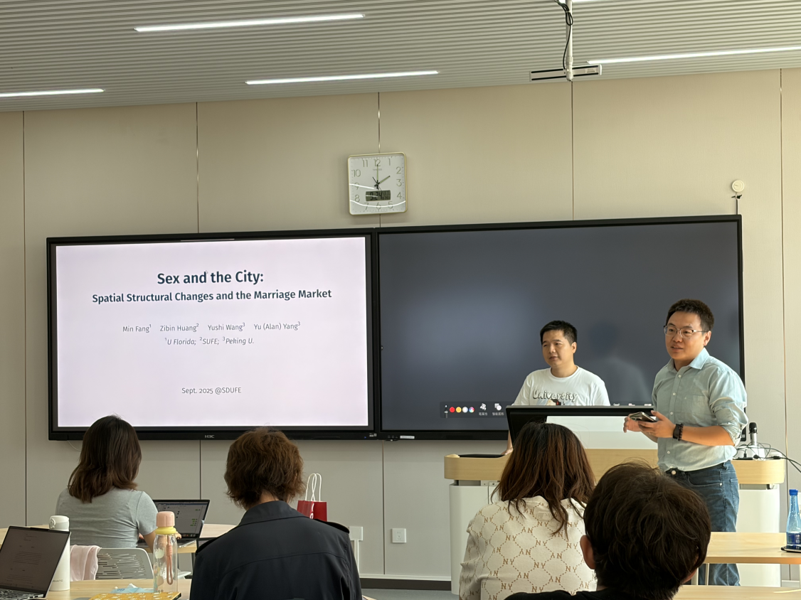 2025年9月24日下午2时,公司在沙河校区二教215教室举办“中青年学者讲座”2025年秋季学期第2讲。本次讲座特邀上海财经大学商公司黄子彬副教授主讲,主题为“Spatial Structural Changes and the Marriage Market”。本次活动由太阳成集团tyc151cc科研创新专项工作主任赵扶扬主持、由太阳成集团tyc151cc青年科研创新团队支持,30余位公司师生共同参与。