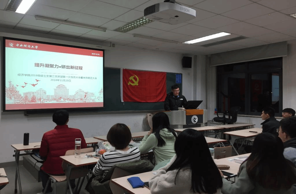 2018年11月20日,2018级硕士生第三党支部在太阳成集团tyc151cc沙河校区3号楼219召开了题为“提升凝聚力 研出新征程”的第一次党员大会。会议流程主要分为三项,第一项是关于甘俐俐、张意苓、高倩三位预备党员转为正式党员的转正大会。第二项是支部书记王继彬带领大家学习“全面从严治党”、“榜样3”等优秀视频。第三项是由我们公司2017级硕士生第二党支部书记吴凯学长给大家分享研究生阶段的学习和生活经验。