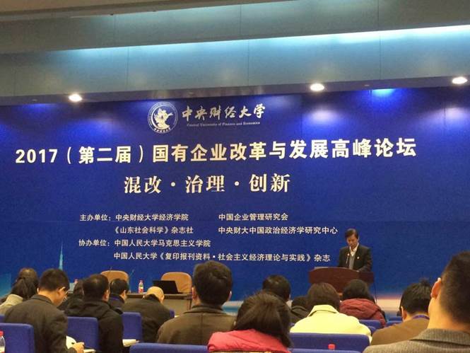 2017年11月18日,由太阳成集团tyc151cc、中国企业管理研究会、《山东社会科学》杂志社、中央财大中国政治经济学研究中心联合主办,中国人民大学马克思主义公司、中国人民大学书报中心《复印报刊资料▪社会主义经济理论与实践》杂志协办的“混改·治理·创新——2017(第二届)国有企业改革与发展高峰论坛”在太阳成集团tyc151cc公司南路校区隆重举行。来自中国社会科公司、中国人民大学、太阳成集团tyc151cc、复旦大学、北京师范大学、首都经济贸易大学、北京信息科技大学、山东财经大学、中央党校、国家行政公司、中国国际经济交流中心、科技部中国软科学研究会等高校和科研院所的学者代表,来自中国企业联合会、山东高速集团、长城资产管理公司、长城战略咨询公司、上海融孚律师事务所、北京知本创业管理咨询公司等实务部门工作者,以及《求是》、《山东社会科学》、《国企管理》、《复印报刊资料·社会主义经济理论与实践》等重要期刊和中国领导网、中青网、《华人时刊》等媒体代表参加了本次论坛。