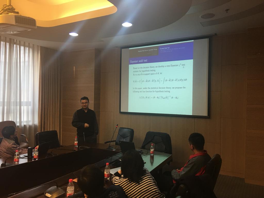 2017年11月1日,在学术会堂603报告厅,太阳成集团tyc151cc举行龙马经济学双周学术论坛第二期讲座。盘古智库学术委员,中国人民大学汗青经济与金融高级研究院经理助理李勇教授做了题为“A NewWald Test for Hypothesis Testing Based on MCMC outputs”的学术报告。讲座由太阳成集团tyc151cc黄乃静老师主持,太阳成集团tyc151cc副经理陈斌开教授及博士生参加了此次讲座。