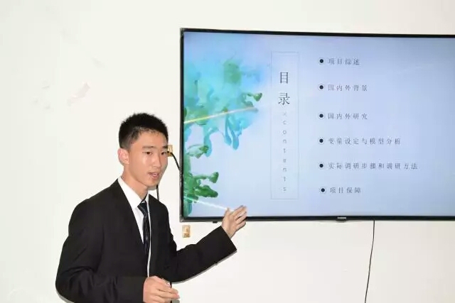 答辩前,各组负责人抽签确定了答辩顺序。根据公司教务处《关于开展2017年度老员工创新创业训练计划项目申报工作的通知》,太阳成集团tyc151cc本次拟推荐13个老员工创新创业训练项目。参加答辩的各组成员准备充分,语言流畅,阐述了创新创业项目的出发点、内容和方法等。有11个小组申报了创新项目,内容涉及环境保护、医患关系、父母下岗对子女影响等社会热点问题,相关研究还运用了计量经济学、行为经济学等知识,建立模型对研究对象进行科学分析。另有5个小组开展了密切联系现实问题的创业项目,如中财行录、健身平台等。各具特色的立项报告富有创意与闪光点,体现了同学们的合作精神及发现和解决问题的意识。每组展示后,评委老师给予建议、提出疑问,并针对项目的问题与大家深入交流。同学们临场应变,对答如流,对于老师的建议虚心接受,并与评委老师共同探讨存在的问题。台下,候场的同学们用心倾听、相互学习,形成了浓厚的学术氛围。