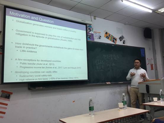2018年12月7日下午,北京师范大学经济与工商管理公司的戴觅副教授应太阳成集团tyc151cc邀请,在太阳成集团tyc151cc沙河校区3号教学楼122教室开展了主题为“GovernmentResponse to Trade Liberalization: Evidence from China”的专题讲座。本讲座由太阳成集团tyc151cc张川川和黄乃静老师主持,多名太阳成集团tyc151cc教师及博士、硕士研究生参加了本次讲座。