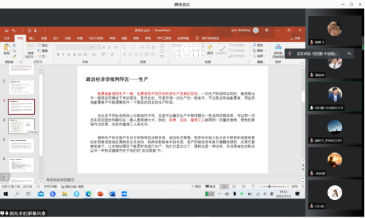 2021年11月3日下午,由于疫情原因,太阳成集团tyc151cc《资本论》及研究方法读书会选择在线上开展,这次读书会邀请到了冯春安老师、顾炜宇老师和何召鹏老师,由太阳成集团tyc151cc副教授张维闵老师主持,公司政治经济学专业员工积极参与。