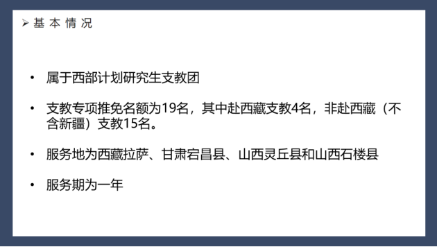 18级的王鼎文通过了支教保研专项选拔,现于西藏拉萨支教,研究生将就读于公司国民经济学专业。他主要介绍了支教保研的情况、流程、面试注意事项以及申请所需的各项条件。他特别提醒同学们要密切关注中财青年网的相关通知,确定自己的硬性条件(包括成绩、综测、志愿小时等)是否符合要求;同时也不能忽视软性条件,提前准备好教团队格证等,丰富教学经验,积极担任员工干部,不断提升自己。