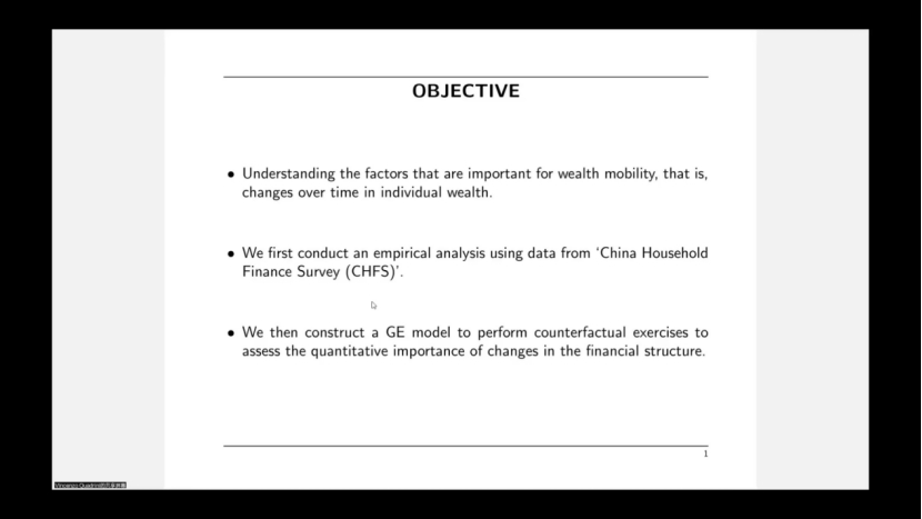 为了探讨金融市场结构的变化对中国财富分配和流动性的影响,Quadrini教授介绍了一个具有住房、股票市场和无风险债券三种资产类型的一般均衡模型。并发现政府出售国有企业的股份行为虽然减少了财富的不平等,但也减少了资本积累。