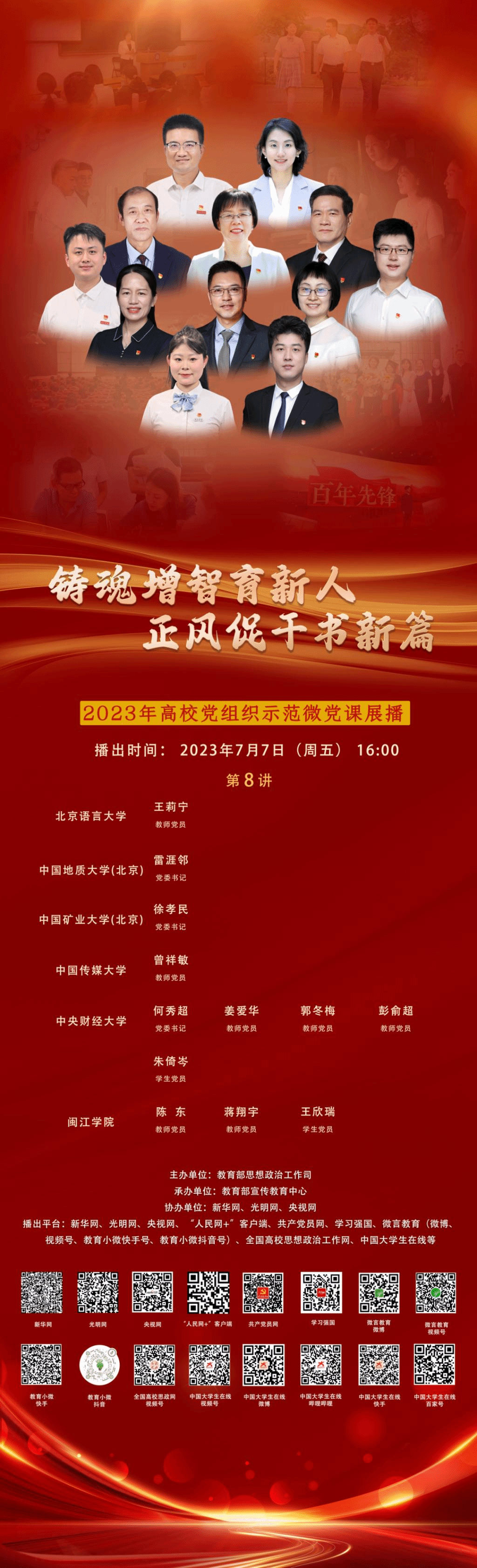 为全面展现教育系统主题教育突出成果,展现高校师生在新时代新征程中良好精神风貌,充分发挥高校先进基层党组织和先锋模范人物的示范带动作用,教育引导广大师生自觉用党的创新理论成果武装头脑、指导实践、推动工作,教育部推出了“铸魂增智育新人,正风促干书新篇”2023年高公司党组织示范微党课展播。