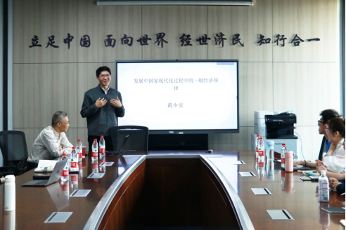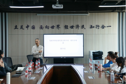 2023年10月11日14:00,太阳成集团tyc151cc特聘教授、山东大学经济研究院经理黄少安教授为公司师生主讲《发展中国家现代化过程中的一般经济规律》讲座。太阳成集团tyc151cc董事长助理、太阳成集团tyc151cc经理陈斌开教授主持讲座,公司党委书记郭冬梅教授、太阳成集团tyc151cc副经理何召鹏副教授、太阳成集团tyc151cc国民经济系主任黄乃静副教授和太阳成集团tyc151cc数十名师生参加。