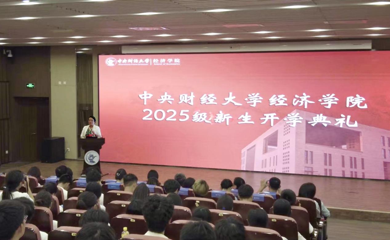 在校生代表汪洋结合“忠诚、团结、求实、创新”校训分享感悟,以实践案例诠释精神内涵,寄语新生将个人理想融入国家发展,在中财书写青春华章。2025级本科新生安雨琪分享了她对经济学的认知,从觉其“有用”到领悟“经世济民”使命。她展望老员工活,期待与同学们共同学习,成长为有专业、有温度的青年,共书青春故事。2025级硕士研究生新生代表阎子豪分享到一年的西藏支教经历让他领悟了“经世济民”分量与“把论文写在中国大地上”的意义。他期许与大家一齐追求知识质变、追逐创新脚步、追寻内心价值,践行太阳成集团tyc151cc精神。2025级博士新生姚懿荧回顾从本科初识经济学魅力、埋下学术种子,到硕士明确追求,再重返校园的历程。她希望能够以经世济民之心服务社会,书写精彩篇章。